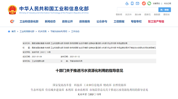 近日,國家發(fā)展改革委聯合科技部、工業(yè)和信息化部、財政部、自然資源部、生態(tài)環(huán)境部等十部門共同印發(fā)了《關于推進污水資源化利用的指導意見》(以下簡稱《指導意見》),對全面推進污水資源化利用進行了部署。